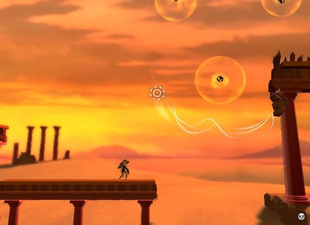 Gut, dass die Entwickler immer wieder mit kreativen Mitteln gegensteuern: Etwa, als seltsame Orbs auftauchen, die sich wie Kletten an Nyx heften, falls sie ihnen zu nahe kommt, so dass man die Remote schütteln muss, um sie los zu werden. Hier muss man geschickt genau zwischen ihren pulsierenden Radien schweben, um erst gar nicht in Kontakt zu kommen. Oder als sich das Auge des Argos hinten im Level zeigt und man schnell ein Versteck finden muss, um nicht von einem Sandsturm hinweggefegt zu werden. Das ist eine klasse Idee, denn man muss bei seinen Flügen und Sprüngen immer darauf achten, dass man rechtzeitig hinter einer Säule oder einem Felsen steht.