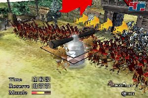oftmals ein heilloses Durcheinander: Immerhin muss man gleichzeitig das Schlachtfeld neigen, die Moral der Jungs beobachten, die nach jedem Verlust fällt, eventuell Reis über das Auswurfloch ins Gelände schleudern, um die Feinde abzulenken, die Kugel dabei nicht aus den Augen verlieren, Krieger über den Z-Button ins Feld schicken, Reiter über den A-Button das Vorfeld sichern lassen, die Flüsse überwachen, Schleusen schließen, Schlüssel bergen, Tore öffnen.