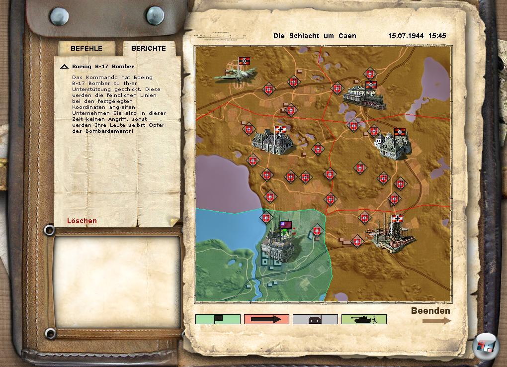 Leute, die gerne mal die Übersicht verlieren, sollten Officers lieber nicht anrühren, denn es könnte sie zu sehr frustrieren. „Wo sind denn meine Panzer?“ ist beispielsweise eine ganz normale Frage, da es praktisch ständig vorkommt, dass man Einheiten sucht. Sie lassen sich zwar wie üblich per Lassomethode und Taste gruppieren, aber es gibt keine Übersicht, wo Einheiten oder Trupps verzeichnet wären. Beim Wiederfinden ist man also ganz auf sein Adlerauge angewiesen, das aber auch nicht von ganz oben suchen darf. Denn ganz rauszoomen ist nicht, da ausgerechnet das begrenzt wurde. So bleibt das Spiel in Sachen Übersicht stets eine Gratwanderung, aber immerhin leitet eine warnende Schaltfläche direkt zu den Angriffen der Deutschen weiter, wenn sie kommen.