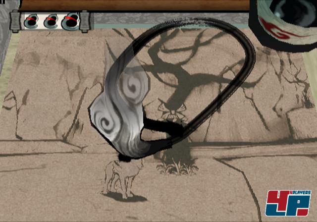 Im Gegensatz zu The Legend of Zelda: Twilight Princess <a class="DYNLINK" onmouseover="DynToolTipp_Show('Klicken für Gameinfos‚)“ onmouseout=“DynToolTipp_Hide(); “ href=“javascript:DynCont_Display(‚Gamefinder‘,’runmod.php?sid=%7BSID%7D&LAYOUT=dyncont_gf&spielid=9716′)“> (Zelda) darf man nicht in menschlicher Gestalt umherstreifen – man bleibt immer ein Wolf. Damit ist Okami