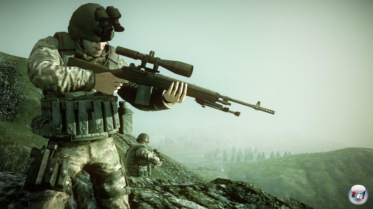 Eines ist allerdings klar: Wer eine echte Herausforderung sucht, der wird sie bei Dragon Rising finden. Schon auf dem normalen Schwierigkeitsgrad geht es alles andere als einfach zur Sache, obwohl man hier Wegmarkierungen hat und gefallene oder verletzte Teammitglieder an den etwas unglücklich verteilten Checkpunkten automatisch wiederbelebt und geheilt werden. Das bringt allerdings nicht viel, wenn der Speicherpunkt mitten in einem Feuergefecht liegt oder die Truppe beim neuen Versuch gleich von einem Kampfhubschrauber unter Beschuss genommen wird, der mit einem Schlag die Hälfte der Truppe kampfunfähig macht. So etwas sorgt genau so für Frust wie plötzliche Verletzungen des Spielers oder Kameraden, obwohl kein Feind in der Nähe ist. Scheinbar können neuerdings auch Bugs schießen! Erspähte Feinde werden eigentlich komfortabel im Kompass am oberen Bildschirmrand angezeigt und auch sonst beinhaltet das HUD sinnvolle Informationen wie die aktuelle Haltung (stehen, hocken, kriechen), Munition- und Feuerrate sowie Verletzungen und Teamanzeigen. Je höher der Schwierigkeitsgrad, desto weniger HUD-Elemente stehen zur Verfügung. Während man auf der erweiterten Stufe weniger Checkpunkte bekommt und Begleiter nicht mehr respawnen, macht der Hardcore-Modus seinem Namen alle Ehre: Keine Checkpunkte, keine Bildschirmanzeigen und keine magische Wiederbelebung sollen selbst Profis ins Schwitzen bringen und für ein möglichst realistisches Militär-Erlebnis sorgen.