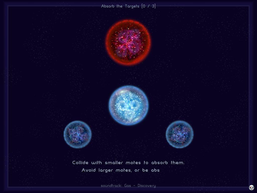 Sphärische Musik fließt beruhigend im Hintergrund, leuchtende Kugeln schweben friedlich durch den Raum. Ist das ein Weltall mit Planeten? Nein, wenn man genauer heran zoomt, sehen die runden Körper eher aus wie futuristische Murmeln oder biologische Organismen – man erkennt wabernde Fasern und Lichtpunkte wie bei Tiefseefischen. Was es auch immer ist: Es sieht irgendwie lebendig, irgendwie faszinierend aus. Aber es ist nicht alleine das Artdesign, das Osmos <a class="DYNLINK" onmouseover="DynToolTipp_Show('Klicken für Gameinfos‚)“ onmouseout=“DynToolTipp_Hide(); “ href=“javascript:DynCont_Display(‚Gamefinder‘,’runmod.php?sid=%7BSID%7D&LAYOUT=dyncont_gf&spielid=1987008′)“> vier Nominierungen beim Independent Games Festival 2009 <a class="DYNLINK" onmouseover="DynToolTipp_Show('Klicken für Gameinfos‚)“ onmouseout=“DynToolTipp_Hide(); “ href=“javascript:DynCont_Display(‚Gamefinder‘,’runmod.php?sid=%7BSID%7D&LAYOUT=dyncont_gf&spielid=9538′)“> bescherte (leider haben wir die PC-Version damals nicht getestet). Denn spätestens, als eine Kugel mit einem gleißenden Zischen absorbiert wird, ist klar, dass es hier trotz einlullender Akustik nicht um rein pazifistisches Zen-Gaming, sondern um das älteste Spiel der Welt geht: Fressen und Gefressen werden.