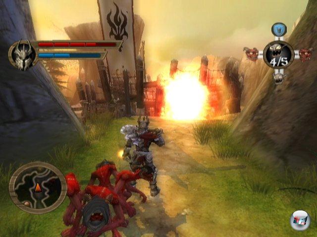 Das spielt sich ja fast genau so wie vor ein paar Jahren! Richtig. Aber das sind ja frische Schauplätze! Richtig. Und der Overlord ist ja ein Teenager! Auch richtig. Codemasters geht für die Premiere auf Nintendos Konsole den sicheren Weg des altbewährten Spieldesigns in neuer, exklusiv für Wii entwickelter Umgebung. Das heißt, dass man in der Haut des schwer gepanzerten, aber diesmal wesentlich jüngeren Overlords durch eine Fantasywelt streift, während einem eine Schar devoter Schergen folgt, um alles auf Kommando in Schutt und Asche zu legen.