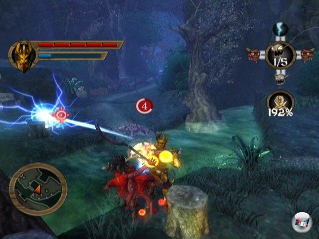 Ja, nur keine Bange: Auf Wii geht es trotz des frisch geschlüpften Bösewichts genau so deftig, wenn auch deutlich einfacher zur Sache als auf 360 und PS3 – immerhin ist der fiese Berater Gnarl kein Greis von Traurigkeit! Da stehen Kisten, Truhen und reich gedeckte Tafeln im Dorf herum? Plündert sie! Da bewachen miese Halblinge eine Brücke? Auf sie mit Gebrüll! Sehr cool: Auch auf Wii rüsten sich die kleinen bunten Teufel automatisch mit allem aus, was sie finden können – von der Heugabel bis zum Kürbishelm, von der Axt bis zum Kettenhemd. Zwar kann die Story keine epischen Bäume ausreißen, aber immer wieder entlockt die satirische Sicht auf die klassische Fantasy ein Schmunzeln; kein Wunder, zeichnet doch auch hier wie auf dem DS und den anderen Plattformen Rhianna Pratchett für die Dialoge verantwortlich.