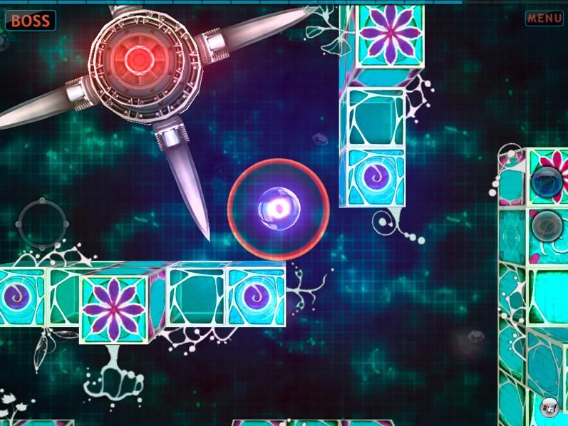 Das ist kein Casualblender, sondern ein komplexes Geschicklichkeitsabenteuer – schon beim Üben wird man von der Vielfalt an Möglichkeiten überrascht: Es geht nicht nur darum, möglichst unversehrt in der Draufsicht durch ein Labyrinth zu navigieren und dabei eine bestimmte Anzahl heller Lichtpunkte einzusammeln, man muss auch Schlüssel verschiedener Farbe finden, Teleporter nutzen, fragile Mauern zum Einsturz bringen, sich in Kreisel und auf Schienen bewegen, seine Größe an schmale Passagen anpassen und die drei Waffen Blitzstrahl, Feuerbombe und Plasmaschüsse clever einsetzen – selbst Bosse sind am Ende eines Levels dabei.