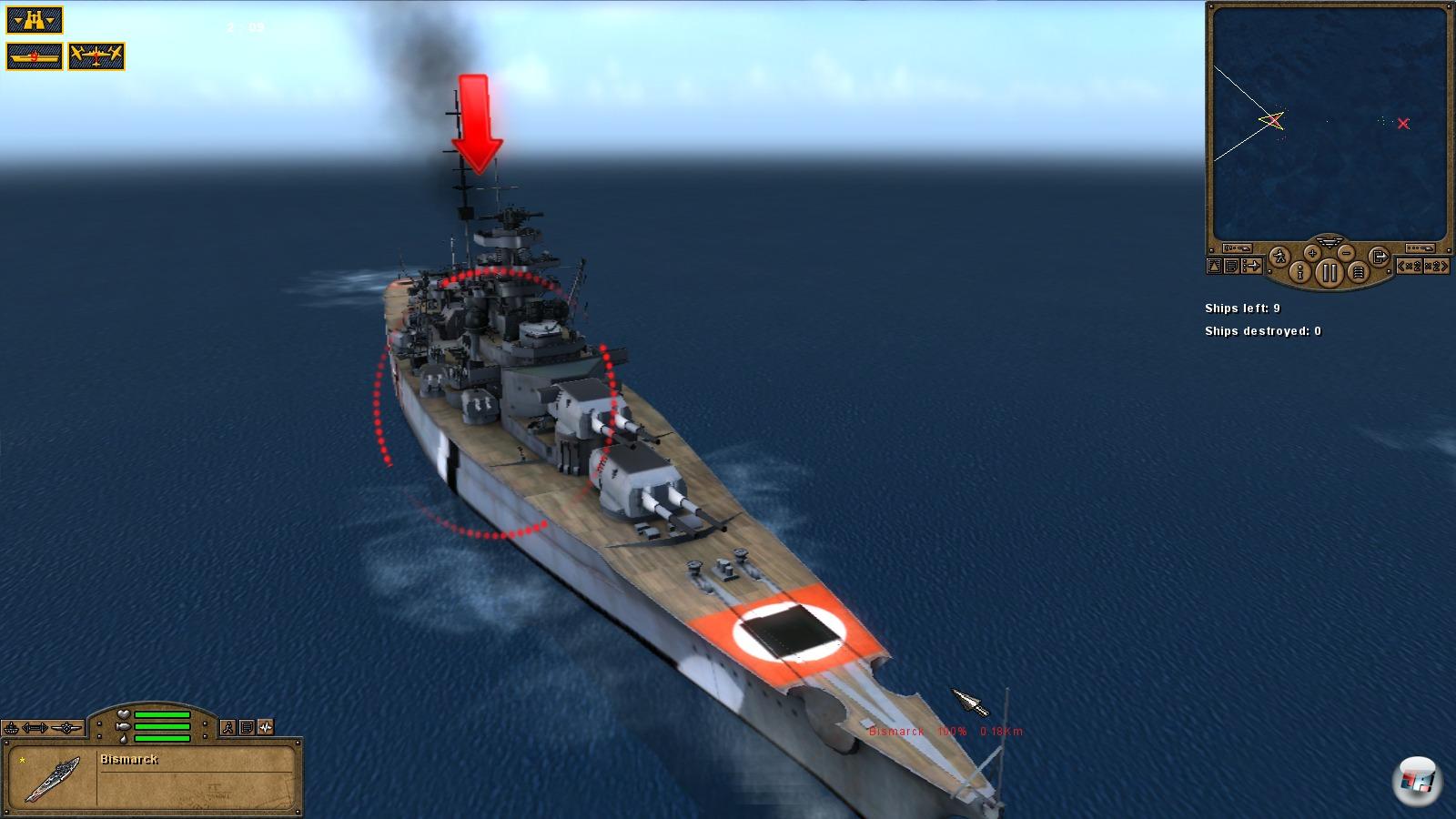| Die Bismarck wartet auf Beute… (inklusive „dezenter“ Entschärfung einschlägiger Symbolik) |