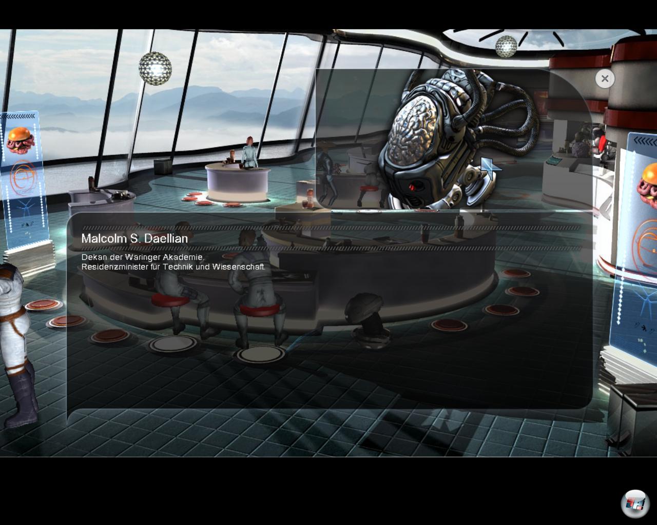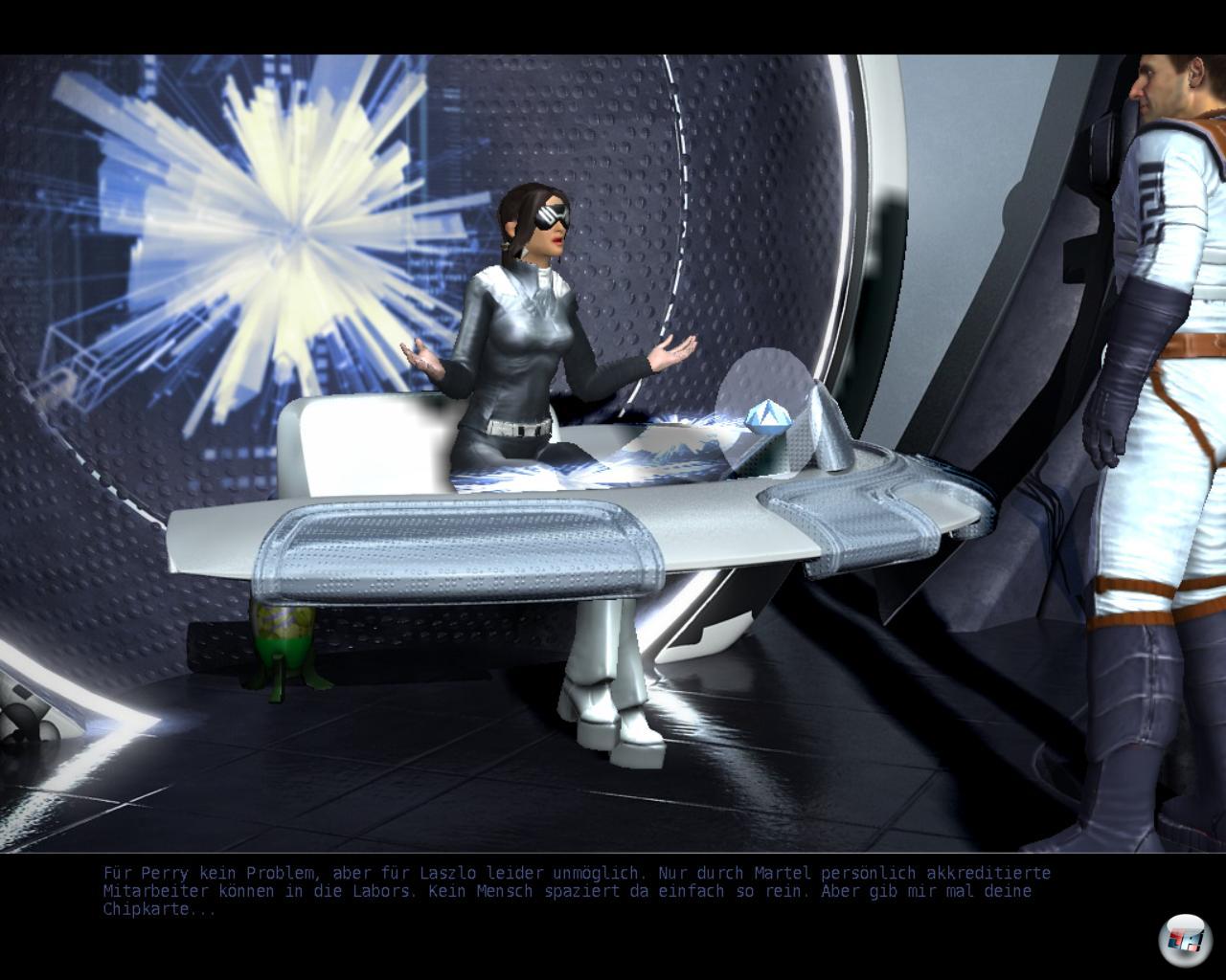Charaktere. Manche davon verhalten sich reichlich seltsam, wie etwa die Blue, die mit ihren tellerförmigen Köpfen was gegen Terraner haben. Ein Gespräch mit ihnen, das nicht im Gekeife endet, ist daher gar nicht einfach. Wie einen Zugang finden? Dialoge beginnen übrigens ganz automatisch, wenn das Symbol angezeigt wird. Echtes Multiple-Choice gibt es also nicht. Ihr könnt aber Themen wählen, über die ihr reden wollt, etwa indem ihr jemand über eine Person ausfragt. Das ist möglich, da wichtige Charaktere und Ideen auch im Inventar landen.Auch stimmlich weiß das Adventure durch Professionalität zu überzeugen, denn es gibt nur ganz wenig Sprecher, die nicht so markant sind. Perry Rhodan ist perfekt besetzt, denn er klingt engagiert und doch spöttisch. Auch alle anderen Hauptcharaktere können sich hören lassen, wie etwa der Wissenschaftler Daellian, der seit seinem Unfall ein Leben als schwebendes Gehirn wie bei Captain Future fristet. Aus seinen Worten ist die Tragik seines Daseins als zwar forschender aber auch ewiglebender Geist zu hören. Perry macht sogar noch ein aufmunterndes Späßchen mit ihm. Viele Stimmen sind aus dem Fernsehen bekannt und wenn im Spiel Nachrichten laufen, sind sogar Nachrichtensprecher zu hören.