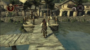 Eines muss man dem Spiel lassen: Die Grafik kleckert nicht! Die Figuren sehen ihren Film-Pendants verblüffend ähnlich, und sind sehr gut animiert – auch wenn es die Designer mit dem Torkeln von Jack vielleicht etwas zu gut gemeint haben. Auch die Levels, speziell die, in denen Tageslicht strahlt, sehen sehr gut aus – bis auf den Einstiegsabschnitt, der ausnehmend hässlich geraten ist; eine Beleidigung der Augen, die aber spätestens auf der Flying Dutchman oder Port Royal vergessen ist. Interessanterweise fließt im ganzen Spiel der schlitzigen Thematik zum Trotz kein Tropfen Blut, darüber hinaus ist die Kamera problematisch – sie lässt sich zwar manuell und flott nachkorrigieren, aber gerade in geschlossenen Räumen zoomt sie immer wieder derart nahe an den Protagonisten, dass auch Drehen nichts mehr hilft. Unschön auch, dass Gegner und Zivilisten aus dem Nichts im Bild materialisieren, auch die an sich sehr gelungenen Zwischensequenzen haben Makel: Offensichtlich wurden sie abgefilmt und mäßig recodiert, jedenfalls erscheinen sie gerade auf HD-Geräten sehr krümelig. Spielt ihr auf Deutsch (sechs Sprachen sind wählbar), bekommt ihr an dieser Stelle auch des Öfteren Bild-Ton-Synchronisationsschwierigkeiten, die man eigentlich nur in alten Kung-Fu-Schinken vermutet. Schade außerdem, dass es in keiner Version Originalsprecher zu hören gibt – macht aber nix, die Ersatzstimmen sind nicht übel, und wie erwähnt gibt es nicht viel Story, die zu sprechen wäre. Dafür donnert der prächtige Soundtrack umso besser.
