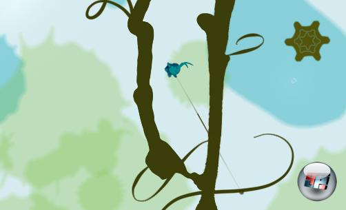 ein anderes mal schwingt ihr euch behende um einen kugelrunden Gegner herum, der versucht, euch vom hohen Stengel auf den Gartenboden zu ballern. Bevor er euch auf den Wecker fällt, solltet ihr ihn besser mit einem beherzten Satz in seinen von einem rotierenden Schild gechützen Kern erledigen. Habt ihr euch verlaufen, schwingt ihr einfach einmal im Kreis und schon fungiert euer Seidenfaden als wegweisendes Radar. Die Neongärten unterscheiden sich zwar optisch nicht all zu stark, doch die unterschiedlich geformten, im Wind wogenden Pflanzen und unebenen Plattformen sorgen trotzdem für Abwechslung.