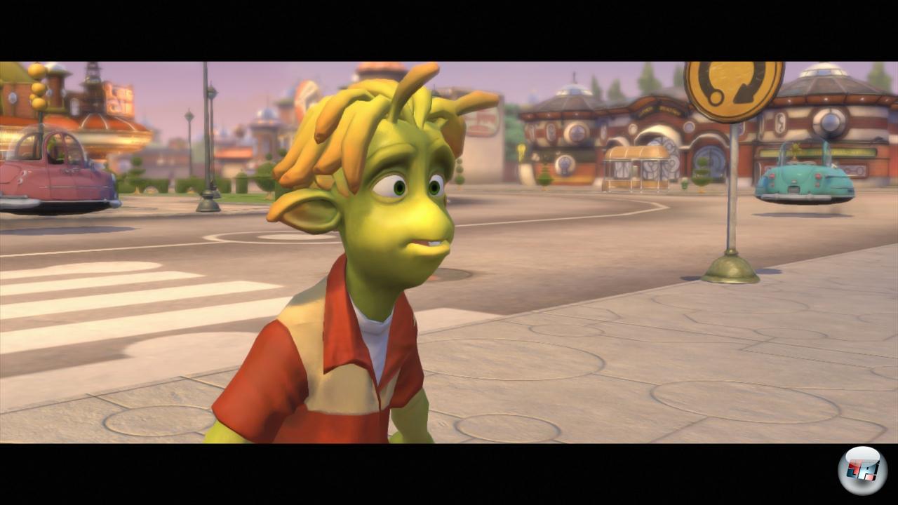 Auch wenn es hinsichtlich der Engine Unterschiede zwischen 360 und PS3 auf der einen sowie diesen und Wii auf der anderen Seite gib, teilen alle Fassungen ähnliche Kritikpunkte. Nehmen wir z.B. die Sprachausgabe in den Zwischensequenzen: Technisch zwar sowohl im englischen Original als auch in der deutschen Lokalisierung sauber, ist es verdammt nervig, dass Lippensynchronität offensichtlich nicht zum Wortschatz der Pyro Studios gehört, die immerhin mit der Commandos-Serie einen strategischen Meilenstein abgeliefert hatten. Doch der liegt mittlerweile mindestens ebenso lang zurück wie der Moment, in denen das Spieldesign aus Planet 51 noch begeistert hätte.