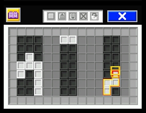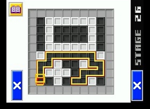 Polarium ist in drei Spielvarianten unterteilt: »Aufgaben«, »Taktik« und »Kampf«. Ersterer erinnert am ehesten an das große russische Vorbild. Hier wie dort fallen Klotzblöcke unregelmäßig von oben hinab, die unten besser schnellsten aufgelöst werden sollten – denn stapelt sich die Bande bis ganz nach oben, ist das Spiel vorbei. Wie wird man die lästigen, zweifarbigen Steine los? Hier gilt es nicht nur Reihen zu bauen, sondern per Ausmalen so viele wie möglich auf einmal auszuradieren. Dazu malt ihr mit dem Stylus (das Spiel wird komplett per Touchpad gesteuert) die entweder schwarzen oder weißen Felder so aus, dass ganze Blöcke wegfallen. Ein letzter Druck auf den Schlusspunkt lässt das Gebilde wie von Zauberhand verschwinden. Das Geniale ist, dass man durch klugen Farbwechsel punkten kann, und dass der neutrale graue Rand dabei eine wichtige Rolle spielt: Ihr könnt über ihn nämlich clever Zickzack-Linien und Rahmen zeichnen. Was so einfach klingt, wird dank der unweigerlich aufkommenden Hektik schnell aufregend – zappt man anfangs nur kleine Klotzreihen weg, konzentriert man sich schon nach kurzer Zeit auf die dicken Felder.