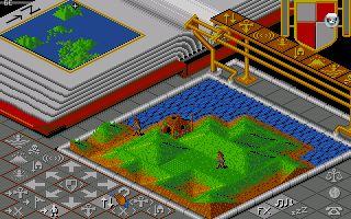 | Amiga, 1989: Populous sah damals fast sympathischer aus als heute: Man veränderte die Landschaft in einem Fenster mit texturierter Landschaft. |