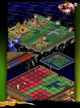 Spätestens hier bekommt das rosa Glas der Retrobrille erste Risse. Aber bevor es zu diesem Endkampf kommt, bauen die Untertanen je nach Freiraum selbständig Hütten, Häuser oder gar Städte. Wenn sie das tun und lange genug unbehelligt darin wohnen, steigt auch die „mediale Energie“ – und damit kann der Erdgott zerstörerische Kräfte wie Erdbeben, Meteoriten oder Sümpfe entfesseln. Sobald man die Möglichkeit dazu hat, sollte man auch zuschlagen. Und die Steuerung legt einem dabei keine Steine in den Weg – man kann schnell über eine kleine interaktive Karte in das Gebiet des Gegners wechseln, kann sowohl das Digikreuz zum feinen als auch den Stylus zum groben Scrollen nutzen.