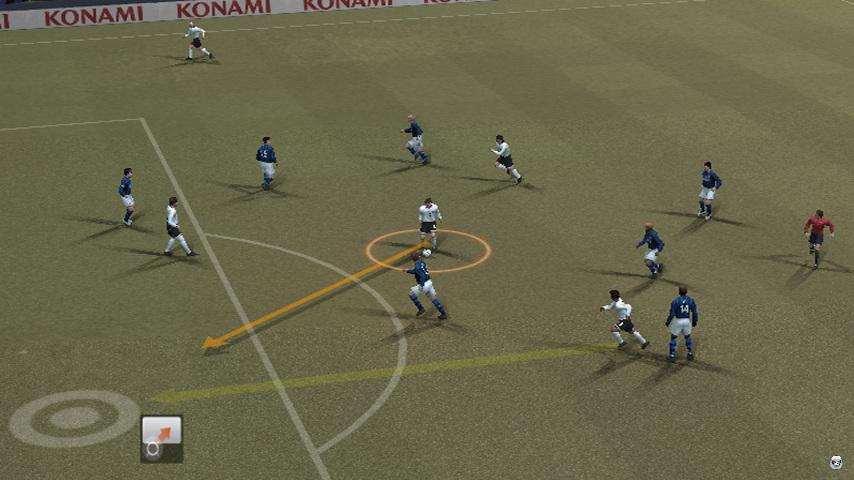 | Wer hier rechtzeitig die Abseitsfalle über das Heben der Remote aktiviert, kann das Tor verhindern. Pässe in den freien Raum sind die mächtigste Waffe beim Rasenschach. |