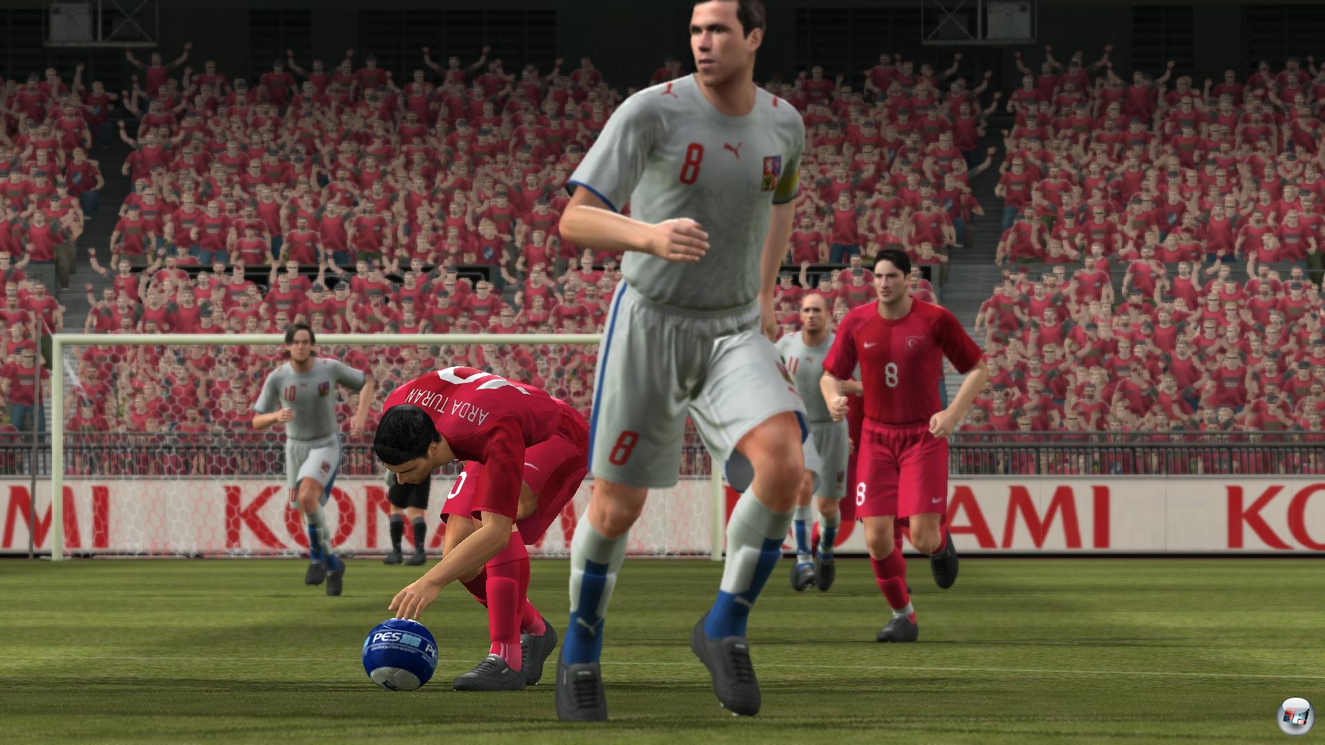 | Obwohl die Fankulisse im Detail immer noch hässlich ist, hat Konami über die Einblendung von kleinen Zuschauergruppen oder der Trainerbank etwas mehr zu bieten als letztes Jahr. |
