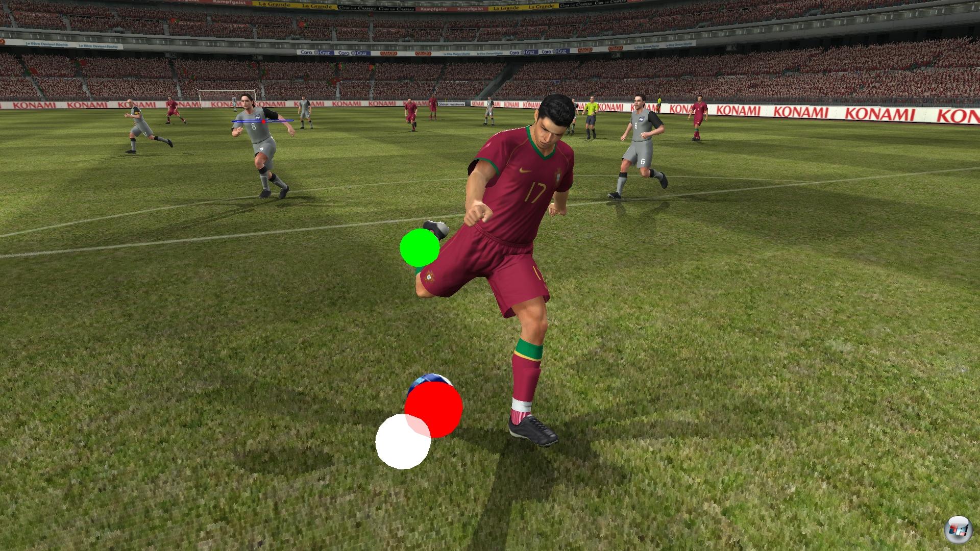 Konami hat die Topspieler dieser Welt mit all ihren Eigenheiten, Körperhaltungen und natürlich den genialen Tricks anzubieten: Ribéry läuft etwas bullig und ist auf den ersten Metern unheimlich explosiv; Luca Toni ist zwar staksig und dreht sich langsam, aber er ist dafür einzigartig torgefährlich; und Drogba spielt sich den Ball wie ein Zauberer ein paar Meter vor, spurtet hinterher und lässt fast jeden Verteidiger alt aussehen; Klose setzt nach dem Tor zum Salto an, Gattuso rempelt alles weg, was läuft. Überhaupt ist der Körpereinsatz jetzt noch spürbarer: Man kann besser abschirmen, man kann seine Gegner beim Tackling schubsen und aus dem Gleichgewicht bringen – Riesen wie Luca Toni halten ihr Gleichgewicht viel länger im harten Zweikampf als Zwerge wie Pirlo. Und wer in vollem Lauf auf einen Verteidiger rennt, wird sich zwar an seinem Taumeln erfreuen, aber schon mal mit einem Pfiff bestraft: Die Schiris zeigen je nach Charakter sehr schnell den gelben oder roten Karton. Dieses Individualität der Unparteiischen ist angenehm, trotzdem zeigen sie ab und zu aus unverständlichen Gründen auf den Elfmeterpunkt: Manchmal scheint hier ein einfaches Tackling zu reichen, um den Elfer zu verschulden.
