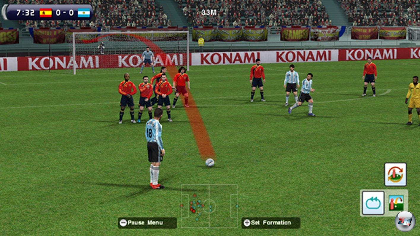 Aber ganz so weit vor das Tor muss man sich auch nicht zaubern: Dieses Jahr landen selbst jene Schüsse aus der zweiten Reihe schon mal im Netz, die einfach über das Schütteln des Nunchuk aus der Drehung heraus abgefeuert wurden. Ohne dass man sich groß freigespielt hätte krachen die Bälle deutlich satter aus dem Fußgelenk – fühlt sich gut an. Hier scheint Konami an der Effizienzschraube gedreht zu haben, was Tore aus der Distanz angeht. Leider hat man bei der Schussmechanik selbst kaum Fortschritte gemacht: Wer nicht einfach schütteln und auf die Fähigkeiten des Schützen hoffen will, sondern wirklich individuell die Höhe und Richtung des Balles bestimmen will, bekommt mit dem Zielen über die Remote dasselbe Problem wie letztes Jahr – die Höhe ist nicht wirklich skalierbar, wenn man mit dem Fadenkreuz das Tor anvisiert.