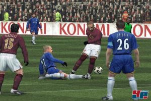 Das heilige Zentrum von PES5 liegt in der Ballphysik. Mal abgesehen davon, dass die Geräusche des runden Leders jetzt deutlich satter rüberkommen und Pfostenschüsse so richtig klatschen, gibt’s auch eine verbesserte Flugkurve bei Distanzschüssen: Das Leder senkt sich wie eine Rakete Richtung Latte, wenn man aus zwanzig Metern einen halbhohen Ball voll im Fallen erwischt. War es im Vorjahr eher selten möglich, aus der zweiten Reihe ein Pfund Richtung Torwart zu donnern, geht das nun öfter. Aber Vorsicht: Es gibt keine sauberen und ewig sicheren Schusslinien wie FIFA 06. Man muss sich hier immer noch eine gute Schussposition erarbeiten, kann dann aber schon mal aus 35 Metern abziehen und den Torwart ins Schwitzen bringen oder gleich spektakulär ins Kreuzeck treffen. Wunderbar anzuschauen sind auch die neuen Direktabnahmen aus der Drehung, die den Ball gefährlich cross auf den Kasten jagen.