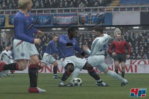 Für den Spieler heißt das: Man muss gezielter und vorsichtiger verteidigen, darf nicht einfach wild gegen den Ball führenden Gegner anrennen oder auf die Tacklingtaste hämmern. Konnte man die Defensive früher fast automatisiert mit der Doppeldeckung laufen lassen, ist jetzt mehr Übersicht und Feingefühl gefragt. Natürlich funktioniert diese Taktik immer noch, aber man muss sie behutsamer ausführen. Das hebt wiederum den Simulationscharakter und sorgt dafür, dass die Verteidigung etwas mehr Konzentration erfordert. Sprich: PES4-Veteranen werden sich komplett umstellen müssen.