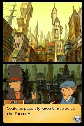 Als Luke und der Professor einen Brief bekommen, welcher angeblich von Luke aus der Zukunft stammt, gehen die beiden der Sache auf den Grund. Die Ermittlungen führen sie in ein verwaistes Uhrengeschäft in einem abgelegenen Stadviertel Londons. Kaum habe ich auf meinem Touchscreen die Zahnräder einer riesigen Uhr zusammengesetzt, beginnt die Maschine zu rattern und das Duo findet sich im futuristischen London wieder. Rätselhaft ist auch, dass ihnen dort ständig eine Frau über den Weg läuft, welche einer alten Liebschaft Professor Laytons zum Verwechseln ähnlich sieht.