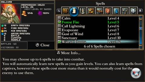 Denn hat man das einfache Zusammenlegen einmal verinnerlicht, erweitern zahllose Möglichkeiten den Horizont des Normal-Puzzlers. Auf Dauer reicht es nicht mehr, Dreierketten zu bilden: Vier nebeneinander liegende Steine werden z.B. mit einem Extra-Zug belohnt, eine Fünferreihe lässt zusätzlich einen Joker erscheinen. Dieser nimmt die Farbe der zwei anliegenden Steine an und dient, ebenso wie die Anzahl der abgeräumten Steine, als Multiplikator der eingehenden Mana-Menge. Und Mana benötigt ihr, um einen von bis zu sieben Zaubersprüchen einzusetzen. Jeder Spruch verschlingt dabei eine feste Menge an roter, blauer, grüner oder gelber Energie (Feuer, Wasser, Erde, Luft), weshalb ihr diesen Manavorrat stets füllen solltet, indem ihr die entsprechenden Steine kombiniert. Das Aneinanderreihen von Münzen spült hingegen Geld in eure Kasse, während lilafarbene Sterne die Anzahl der