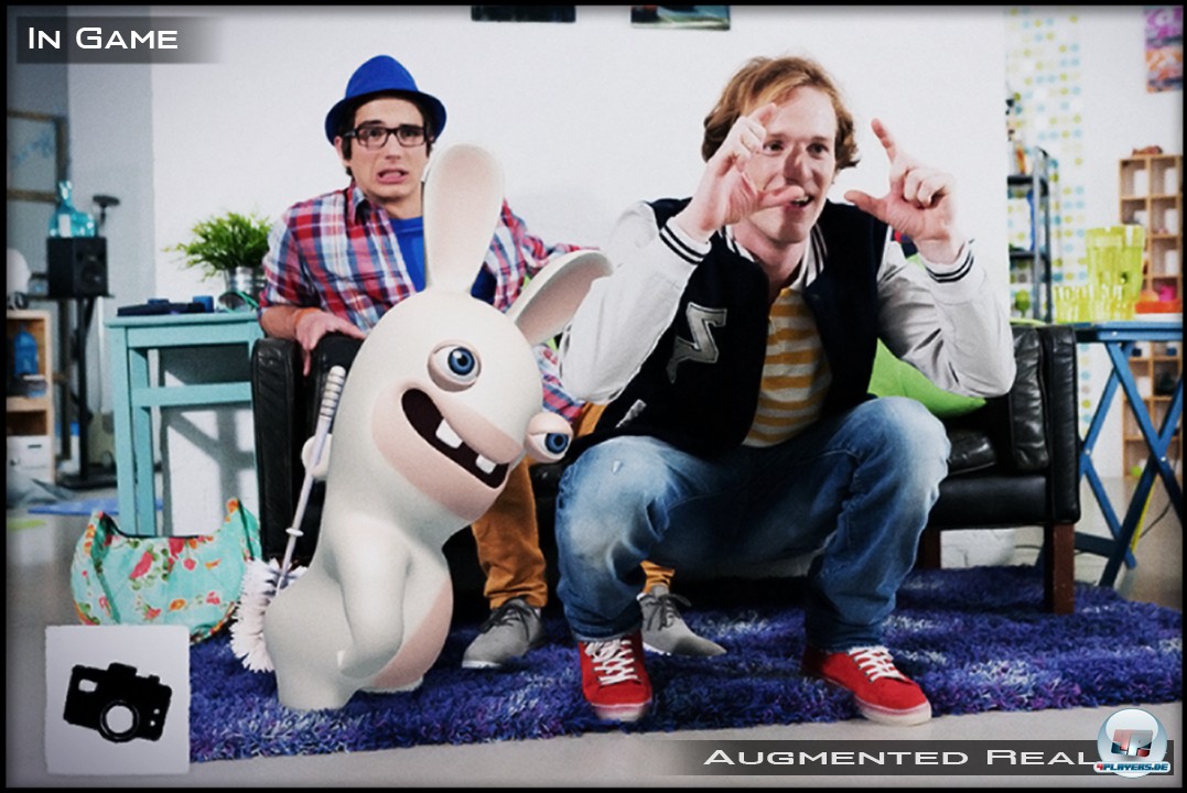 [GUI_PLAYER(ID=80182,width=400,text=Die „erweiterte Realität“ spielt auch in einigen der Minigames eine Rolle.,align=right)]Endlich machen die stets krakeelenden Hasen von Ubisoft wieder das, was sie meiner Meinung nach am besten können: Minispiele. Klar: Ihre Jump&Run- bzw. Action-Adventure-Abstecher auf Nintendo-Systemen waren eine nette Abwechslung, doch anfreunden konnte ich mich nie mit ihnen. Ich wollte die alten Rabbids zurück. Die Rabbids, die „Bwaaaaah!“ schreiend Alltagsgegenstände zweckentfremden. Die Rabbids, die lauthals alles veralbern, was gerade „in“ ist. Die Rabbids, die mich zur Anfangsphase von Nintendos Fuchtel-Konsole länger an die Remote gefesselt haben, als ich mir im Nachhinein zugestehen möchte. Und jetzt habe ich sie wieder – auf einem System, das der Spielmechanik mit seiner Ganzkörperkontrolle entgegen kommen müsste.