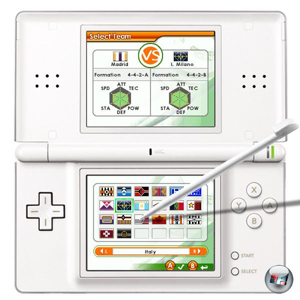 Bis hierher weckt Real Football den Eindruck als wäre es dem Fifa-Meister hoffnungslos unterlegen: Geringerer Umfang, keine Lizenzen, keine Onlineunterstützung. Und das will ein echter Herausforderer sein? Ja, denn Real Football schießt dort die Wertungstore, wo es drauf ankommt – auf’m Platz! Der Ubisoft-Titel sieht nicht nur grafisch einen Tick schöner aus und spielt sich deutlich flotter als die zähen EA-Partien. Nein, er fühlt sich auch besser an! Zwar ist die Ballphysik auch hier noch weit von der Realität entfernt, doch zumindest könnt ihr hier präzise passen, flanken und schießen und habt das runde Leder merklich besser unter Kontrolle als bei Fifa. Nervig ist lediglich die dezent hektische Kamera, von der es auch nur eine Grundeinstellung gibt. Hier hätte etwas Auswahl sicher nicht geschadet, auch wenn ihr die Positionen eurer Mannschaftskameraden auf dem Touchscreen dank Radar immer gut im Blick habt. Auf den Stylus-Einsatz wird übrigens weitestgehend verzichtet: Lediglich beim Elfmeterschießen steuert ihr sowohl die Schützen als auch den Torwart ausschließlich über Drückspielereien auf dem unteren Bildschirm.