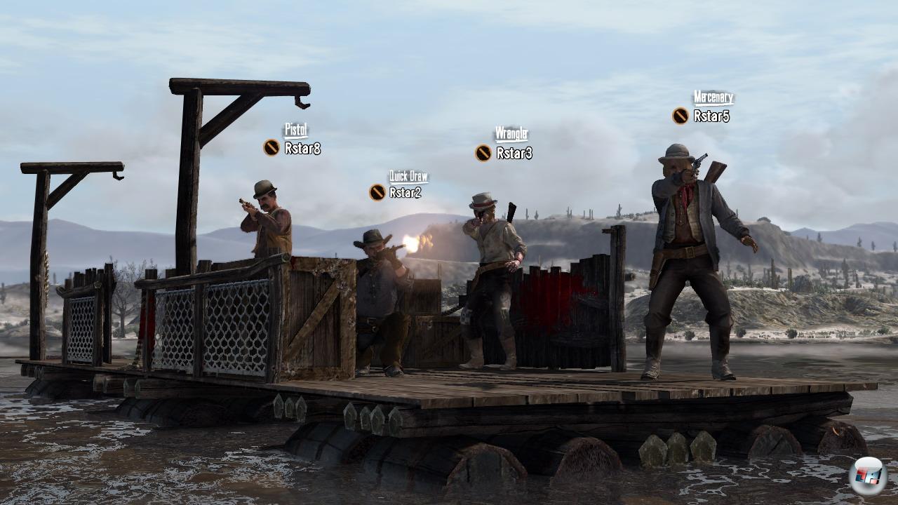 Immerhin: Die große Freiheit weht sogar durch die Online-Prärie. Im Freien Modus treffen sich nämlich bis zu 16 Spieler, duellieren sich oder schließen sich zu Banden zusammen, überfallen alleine oder als Gruppe Banditennester, erfüllen auch online Herausforderungen wie das Kräutersammeln oder die Jagd bestimmter Tiere und starten Einzel- sowie teambasierte Schusswechsel. Jeder Erfolg bringt Erfahrungspunkte – und mit jedem Stufenaufstieg erhalten Multiplayer-Cowboys und -girls Zugang zu neuen Charaktermodellen, Reittieren sowie zusätzlichen Waffen. Zwar kann man Schießeisen und Pferde auch getöteten