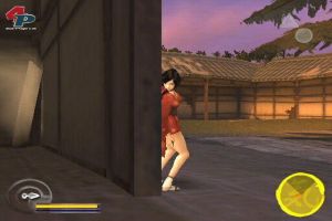 Aber viel wichtiger als der fehlende Lebenssaft ist die Kamera. Die kommt nämlich direkt aus der Hölle der Orientierungslosigkeit. Zwar lässt sich der Blickwinkel mit dem rechten Analogstick justieren, aber viel zu oft schwenkt er in Kämpfen hinter Wände, Steine oder Häuser. Man sieht plötzlich keinen Gegner mehr, sondern nur Schwärze. Oder den eigenen Schlüpfer. Schon Tenchu hatte Probleme mit der Perspektive, aber dort konnte man sie mit etwas Mühe in den Griff bekommen. Hier wird man selbst beim Schleichen von unerwarteten Perspektivwechseln verärgert. Komfortables Umschauen ist kaum möglich, plötzliche Gegner im Rücken sind dafür Alltag.