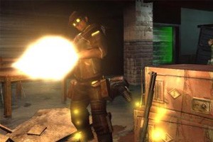 | Mündungsfeuer und Taschenlampe helfen die finstere Umgebung zu erleuchten. |