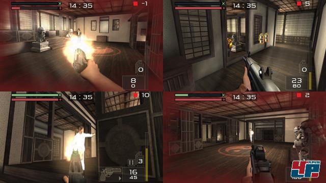 Außerdem fehlt eine schnelle Drehung um 180 Grad: Wenn man in späteren Levels Feinde im Rücken hat, dauert das Umdrehen einfach zu lange. Hier hätte Red Steel eine dynamischere Alternative als das zähe Schwenken der Remote anbieten müssen – einfach ein Knopfdruck. Übrigens empfiehlt sich der Multiplayer-Modus im Splitscreen nur bei viel Raum, Beamer und Fehlertoleranz. In hektischen Duellen auf Minibildschirmen kommt angesichts der vier Karten kaum langfristige Freude auf, wenn man einmal in seinem Leben einen Online-Shooter gespielt hat. Man probiert es aus, ballert ein wenig im Deatmatch alleine oder im Team um sich und hört dann auf. Einzig und allein der in diesen Tagen politisch höchst inkorrekte „Killer“-Modus hat seine Reize: Hier bekommt jeder ein geheimes Ziel über die Remote-Lautsprecher. Aber: Dieser Modus ist tatsächlich nur mit vier Freunden spielbar…