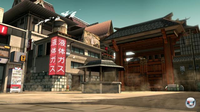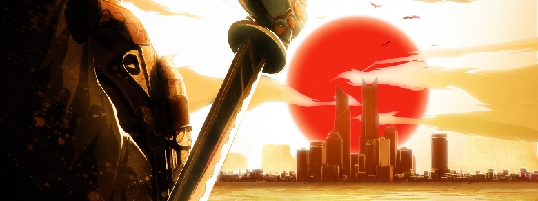 Statt Neonreklamen und geleckter Anzug-Yakuzas bestimmen Staub, windschiefe Holzhäuser, Minen und asiatische Tempel das Bild. Vandenberghe hat einen ansehnlichen Mix aus Western-, Eastern- sowie Comic-Elementen erschaffen. Dazu gesellt sich ein dezenter Industrie-/Science-Fiction-Einschlag mit attackierenden Flug-Drohnen, Computern und großen Zahnrad-Türen. Passend dazu läuft mein Alter Ego im langen Mantel, mit großer Hutkrempe, Pistole sowie Katana durch die verlassene Stadt.