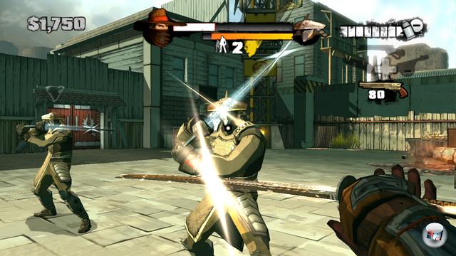 Da ich die Umgebung aus der Ego-Sicht betrachte, bekomme ich aber nur meine Waffen zu Gesicht. Die klischeereiche Geschichte um den Rächer, sein geheimnisvolles Schwert, einen greisen Meister und diverse Verbündete hält sich dezent im Hintergrund und wird nur in kurzen Renderqequenzen weiter erzählt.