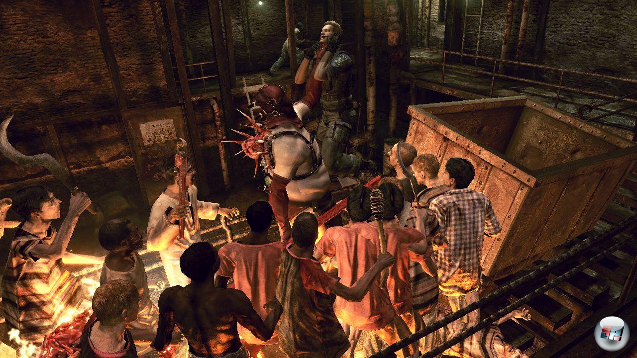 Zu Beginn ist man jedenfalls noch froh, in schusskräftiger Begleitung unterwegs zu sein, die man über zwei Befehlsformen entweder defensiv an sich binden oder offensiv losziehen lassen kann – was überaus gut funktioniert: Man kann und muss diese taktische Aufteilung auch in Bosskämpfen nutzen, um einen Feind z.B. von vorne und hinten zu attackieren. Capcom hat den Kampf im Duett jedenfalls sehr gut und nützlich umgesetzt, zumal Sheva den Weg zurück zu Chris nach kurzem Befehl auch über längere Strecken findet und in eigenen Situationen wirklich in letzter Not rettet. Apropos Befehl an Sheva: Man muss immer wieder über den militärischen Ton schmunzeln, wenn Chris Anweisungen gibt oder beide Waffen austauschen bzw. nach Munition fragen – beide reden das ganze Spiel über wie ein Stabsfeldwebel und seine Gefreite miteinander, wenn sie interagieren.