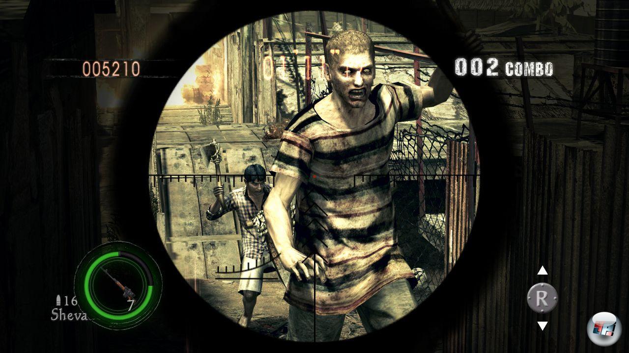 Capcom hat sehr viel Abwechslung hinsichtlich der Schauplätze und Situationen parat, was positive und negative Auswirkungen auf das Spielerlebnis hat. Einerseits genießt man nach den staubigen Dörfern die Ausflüge mit Jeeps, das langsame Erkunden von Höhlen, die Fahrt auf dem Boot in weiten Sümpfen und das Kraxeln in unterirdischen Tempelanlagen samt archäologischem Flair – da fühlt man sich beim Verschieben von Monumenten und Lichträtseln fast wie Chris Jones und Sheva Croft. Ich musste mich mehrmals umschauen, um diesen Wechsel im Spieldesign zu realisieren: Statuen? Fallen? Drehen? Und als man mit Sheva ohne Automap durch tiefschwarze Tunnel stromert, wobei der eine die Lampe halten muss und nur der andere schießen kann, weht fast ein kooperativer Survival-Horror-Wind. Später kommen Labore, Ölfelder und riesige Anlagen hinzu, in denen man wie in Gears of War von Deckung zu Deckung ballert.
