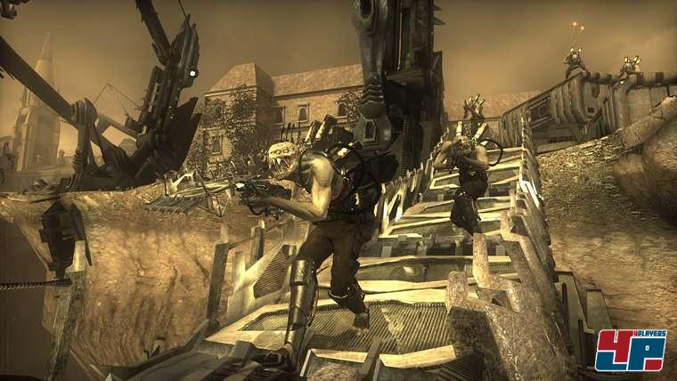 Dieser Eindruck ändert sich aber relativ schnell: Die Texturen werden besser -ohne allerdings irgendwo auch nur ansatzweise in Gears of War-Bereiche zu kommen- und die Areale insgesamt abwechslungsreicher. Gewisse Anleihen bei den üblichen Verdächtigen, angefangen bei den Call of Dutys oder Medal of Honors bis hin zu Prey mit seinen organisch-metallischen Ansätzen, lassen sich zwar auch hier feststellen, doch Insomniac schafft es, sich eine gewisse Eigenständigkeit zu erarbeiten.