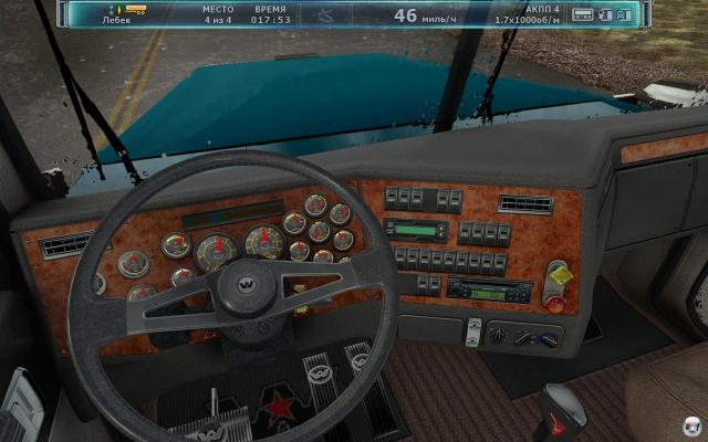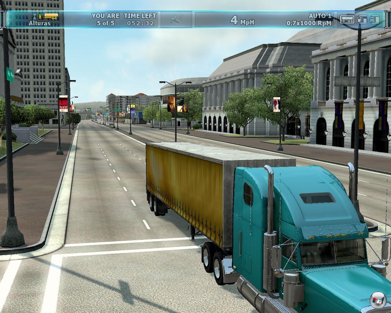 Dem Simulationsanspruch wird das Spiel gerecht: Nahezu alles, was wichtig ist, lässt sich am Laster bedienen… Von den Außenspiegeln über den Tempomat bis zur Motorbremse. Sattes Dröhnen der Motoren trägt sein Übriges zur authentischen Atmosphäre bei, auch wenn ein Truck sich anhört wie der andere. Tag/Nachtwechsel ist ebenso an Bord wie dynamisches Wetter, wobei sich der Truck bei Nässe nicht wesentlich anders steuert als bei Sonnenschein. Die Tatsache, dass sich erst per Ausbau der eigenen Spedition durch Angestellte und Filialen die gesamte Spielwelt erschließt, wirkt sich positiv auf die Langzeitmotivation aus. So lernt man nach und nach immer neue Städte kennen. Zwar besteht etwa die Hälfte davon nur aus den Depots und so unterscheiden sie ich entsprechend kaum voneinander, doch die anderen etwa 20 Siedlungen bieten zum einen mehr Unterschiede und bestehen zum anderen aus mehr als nur Andock-Stationen.