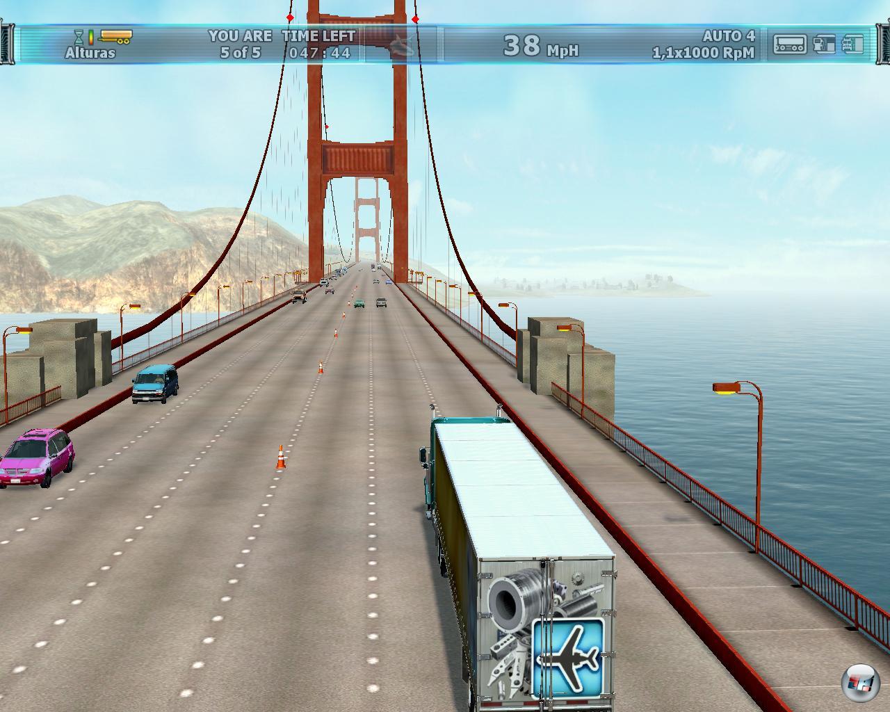 Kurios: Obwohl San Francisco auf der Spielkarte nicht eingezeichnet ist, existiert es im Spiel! Die Bay-City Area (Oakland) wurde integriert und auch die Golden Gate Bridge kann befahren werden. Neben der reinen Simulation (mit seichter Story-Garnierung) gibt es quasi als „Sättigungsbeilage“ eine komplett eigenständige, durchaus fordernde Wirtschaftssimulation dazu. Und während man bei der KI innerhalb der Rennen keine Überraschungen erwarten darf (die fährt stoisch ihren „Stiefel runter“) ist die unternehmerische KI-Konkurrenz schon etwas anspruchsvoller und man hat im höheren der beiden Schwierigkeitsgrade schon alle Hände voll zu tun, wenn man mit seiner Spedition zum „König der Trucker“ Kaliforniens aufsteigen will.