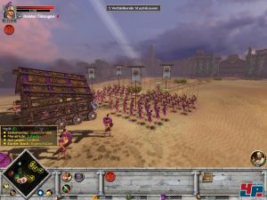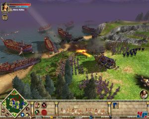 Die Seeschlachten sind nicht nur Rome <a class="DYNLINK" onmouseover="DynToolTipp_Show('Klicken für Gameinfos‚)“ onmouseout=“DynToolTipp_Hide(); “ href=“javascript:DynCont_Display(‚Gamefinder‘,’runmod.php?sid=%7BSID%7D&LAYOUT=dyncont_gf&spielid=3554′)“> überlegen, sondern auch allen anderen historischen Echtzeit-Strategiespielen. Zwar funktioniert das Rammen nicht immer, wie ihr euch das vorstellt und das Versenken dauert etwas, anstatt das Schiff gleich in Stücke zu reißen, aber die Funktionen der drei Schiffstypen -Galeere, Bireme und Trireme- überzeugen einfach. Ihr bestimmt, was euer Schiff machen soll: Versenken, entern oder Schiffskaserne. Darüber hinaus überzeugt, dass ihr jedes Ziel an Bord einzeln beschießen und auch jedem Soldaten einzeln Befehle erteilen kann. So könnt ihr nicht nur das Schiff als Ganzes anwählen sondern auch jeden Matrosen und den Helden, was neue taktische Möglichkeiten eröffnet.