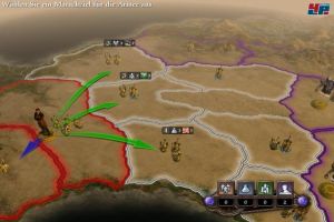 In den ersten Stunden ist genau diese Freiheit auf der Weltkarte das faszinierende Element, das Strategen ins angenehme Grübeln bringt. Aber bald zeichnet sich ab, dass es letztlich doch in eine ausgewogene Richtung gehen muss, zumal Abweichungen von der vorgegeben Diplomatie kaum möglich sind. Wählt man den Weg der gezielten Aufrüstung und lässt sich Zeit mit dem Hauptziel, wird auch der Gegner mit seinen Armeen über die Karte ziehen und Territorien belagern. Wählt man den Weg der schnellen Erfüllung des Hauptziels, ist man eventuell zu schwach für die finale Schlacht – hier wird man sogar gewarnt, dass man vielleicht erst schwächere Regionen attackieren sollte. Also ist man immer gezwungen, einen Mittelweg zu wählen, der sogar von kleineren Nebenzielen vorgegeben wird.
