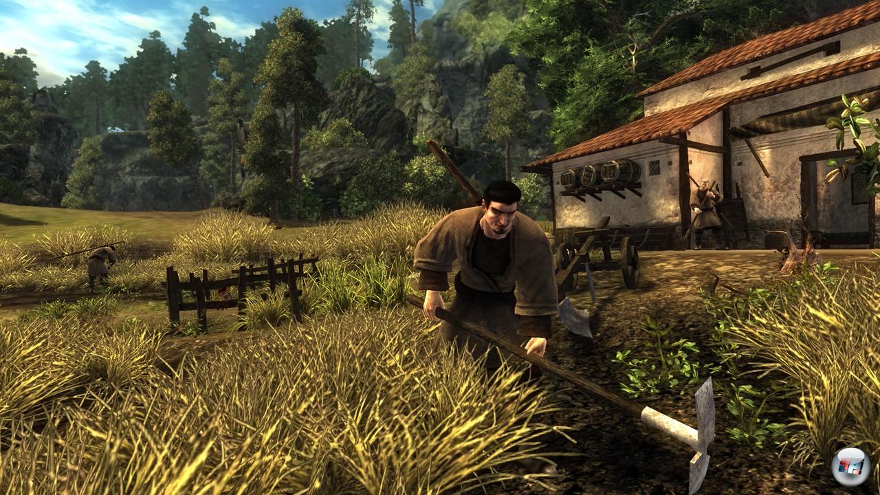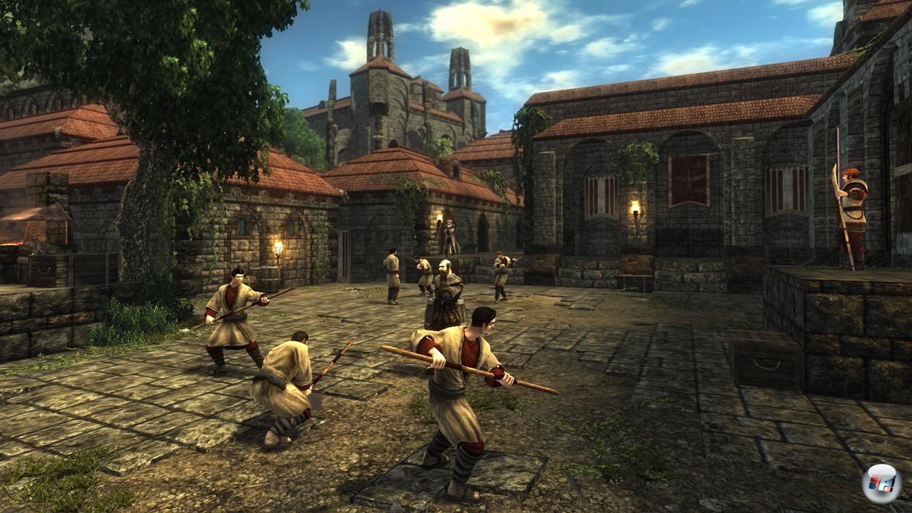 Das Spiel wird zwar etwa doppelt so schnell auf der Festplatte installiert und läuft bis auf das Stocken beim automatischen Speichern flüssig, aber es ist in diesem Zustand nur für genügsame Couch-Helden geeignet. Es sieht zwar nicht so übel aus wie anno dazumal Two Worlds <a class="DYNLINK" onmouseover="DynToolTipp_Show('Klicken für Gameinfos‚)“ onmouseout=“DynToolTipp_Hide(); “ href=“javascript:DynCont_Display(‚Gamefinder‘,’runmod.php?sid=%7BSID%7D&LAYOUT=dyncont_gf&spielid=9641′)“>, aber hinsichtlich der Texturen ist es eine Klasse schlechter als am PC; es hat auch eine geringere Sichtweite, leidet unter plötzlich auftauchenden Lanfschaftsdetails, seltsamen Schatteneinblendungen an Mauern sowie fehlender HD-Optimierung – wer die verzerrten Beschreibungstexte in den Menüs entziffern will, braucht eine Lupe. Außerdem ist es ein Unding, dass man die Empfindlichkeit des Analogsticks nicht einstellen kann: Im Kampf gegen mehrere Gegner kann einem bei rasant rotierender Kamera schon mal schwindelig werden.