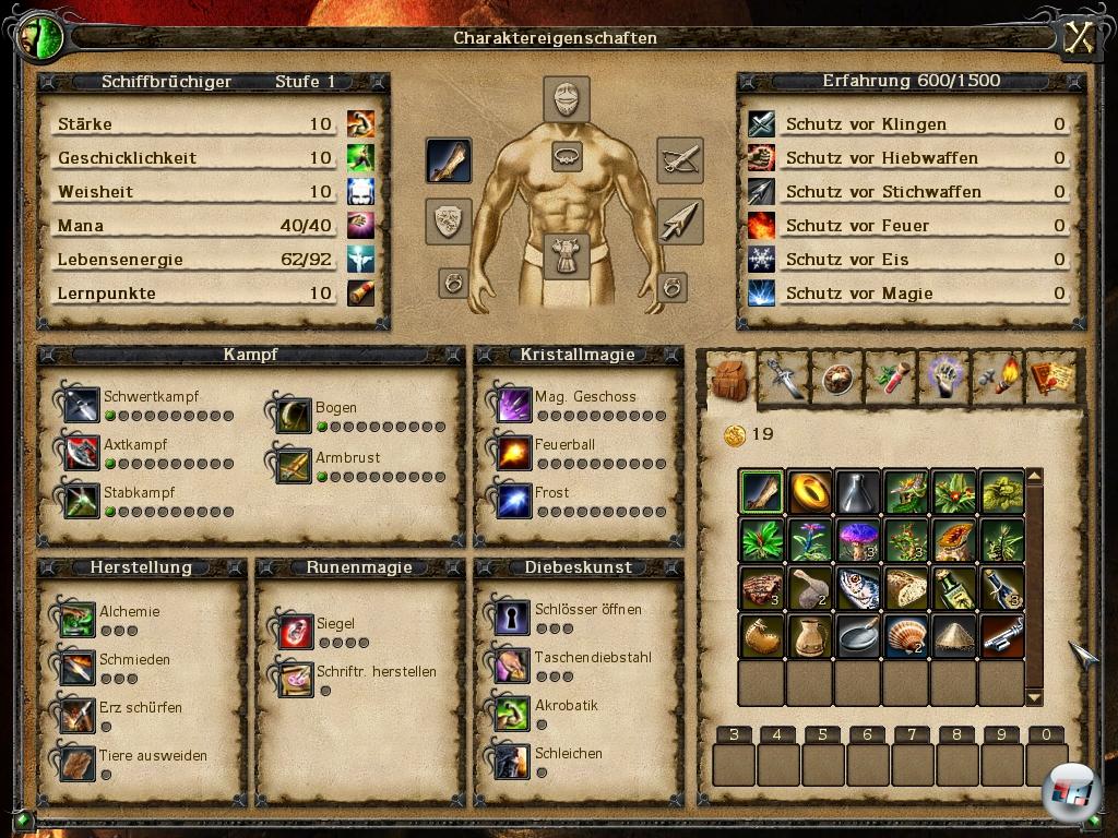 Dieses System hat zwar seine Vorteile, denn es ist offen und man kann alles mischen, aber es erlaubt keine markanten Karrieren, zumal es sehr beschränkt aufgebaut ist: Magier können mit magischem Geschoss, Feuerball und Frost gerade mal drei Sprüche entwickeln. Das wird allerdings durch Licht- und Schutz-Spruchrollen wieder etwas ausgeglichen – es ist später sogar möglich, einen kämpfenden Begleiter zu beschwören oder sich mit der Nautilusverwandlung so klein zu machen, dass man durch enge Löcher kriechen kann.