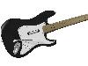 Gitarre? Check. Da die Guitar Hero-Serie (GH) sich auf Klampfen aus dem Hause Gibson spezialisiert hat, sind die Macher von Rock Band beim großen Konkurrenten Fender fündig geworden und liefern eine etwa 2/3 der Normalgröße erreichende Version der Kultgitarre „Stratocaster“ ab. Montage ist hier minimal: Es muss nur der Kopf mit den versilberten (Plastik-) Wirbeln aufgesteckt werden. Die Verarbeitung ist solide. Und dennoch müssen sich Gitarreros, die bislang mit Activisions Helden aufgetreten sind, auf eine Umgewöhnung einstellen: Der Kippschalter z.B., der den Seitenanschlag simuliert, ist deutlich schmaler und gibt auch nicht mehr das notorische kleine Klicken der Mikroschalter in den Gibson-Instrumenten von sich. Im Gegenzug geben die Bundtasten nun Klickgeräusche von sich, die allerdings nur anfänglich stören. Deren Anzahl wurde allerdings aufgestockt: Auf dem leider zu billig und plastillin wirkenden Hals samt Griffbrett – hier hätte ein Holzmaserungseffekt wahre Wunder gewirkt – sind mittlerweile zwei Sets mit je fünf Tasten zu finden. Eines an der bekannten Position am oberen Halsende. Ein weiteres, das für schnelle Sololäufe (und kleine Finger) ideal ist, findet sich weiter unten. Die Tasten sind in das Griffbrett integriert – im Gegensatz zu den GH-Tasten, die quasi „auf“ dem Hals sitzen.