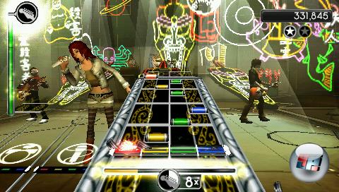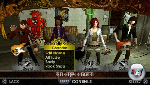 Dafür allerdings bekommen die PSP-Musiker eine umfangreiche Karriere („World Tour“), die sich vom Verlauf her im Wesentlichen an Rock Band 2 orientiert und auch mit den verschiedenen wählbaren Managern ihre Aufwartung macht – dabei aber insgesamt nicht so sehr in die Tiefe geht wie die großen Geschwister. Das Problem: Außer der Tour, die einen Dutzende Stunden bei der Stange halten kann -vor allem, wenn man zwischendurch immer wieder am Outfit seiner Truppe feilt- gibt es auch für Solisten kaum etwas zu tun. Sicher: Man kann trainieren und sich dabei sogar auf ein Instrument festlegen. Und es gibt den Survival-Modus, der einem alles abverlangt, während man wie wild von Instrument zu Instrument springt. Doch beides ist kein vollwertiger Ersatz für den Spaß, der sich mit einem anderen menschlichen Bandmitglied einstellen würde.