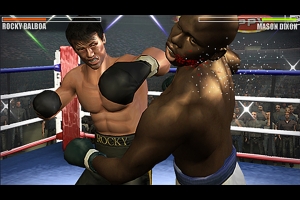 auf PSP – häufig das Synonym für lieblose präsentierte Lizenzen – steckt eine anspruchsvolle Simulation wie sie demnächst wahrscheinlich nur Fight Night Round 3 auf PlayStation 3 zeigen wird!Was die Akteure im Vergleich zu EAs Stars allerdings nicht beherrschen, ist das Klammern. Stattdessen entfernen sie sich durch Wegdrücken ihrer Gegner – entweder nach vorne, links oder rechts – aus brenzligen Situationen. Auch das Verarzten von Platzwunden oder Schwellungen bietet Ubisoft nicht an. Wahrscheinlich liegt es daran, dass Rocky einen Film zitiert und keine Tatsachen beschreibt. Der Vorteil des Wegschiebens: Die Kämpfe sind ständig in Bewegung und ihr schwitzt sofort weiter, wenn euch die smarten Gegner mit geschickter Deckung und dem Ausgucken eurer Schwachstellen auf die Pelle rücken. Schon auf dem einfachsten von drei Schwierigkeitsgraden fordern Rocky und Filmkollegen den Profi in euch!
