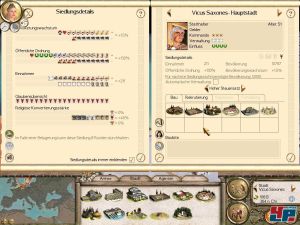 Auch die Optik und Akustik sind weitgehend dieselbe wie beim Grundspiel, was aufgrund der opulenten 3D-Schlachtdarstellung natürlich nur zu begrüßen ist. Am meisten hat sich noch beim Design der Einheiten getan, die schließlich alle neu sind. Die Völker wurden gut getroffen, es gibt aber nur ein Gebäudedesign für alle Barbaren. Auch der Introfilm ist neu, ein Einführungsvideo für jede Kampagne fehlt aber. Das Tutorial ist exakt dasselbe wie beim Grundspiel nur mit neuen Einheiten. Allerdings gibt es keine neue Karte wie beim früheren Add-Ons Viking Invasion <a class="DYNLINK" onmouseover="DynToolTipp_Show('Klicken für Gameinfos‚)“ onmouseout=“DynToolTipp_Hide(); “ href=“javascript:DynCont_Display(‚Gamefinder‘,’runmod.php?sid=%7BSID%7D&LAYOUT=dyncont_gf&spielid=3516′)“>, lediglich die Verteilung der Länder und Städte hat sich entsprechend der Spätantike geändert.