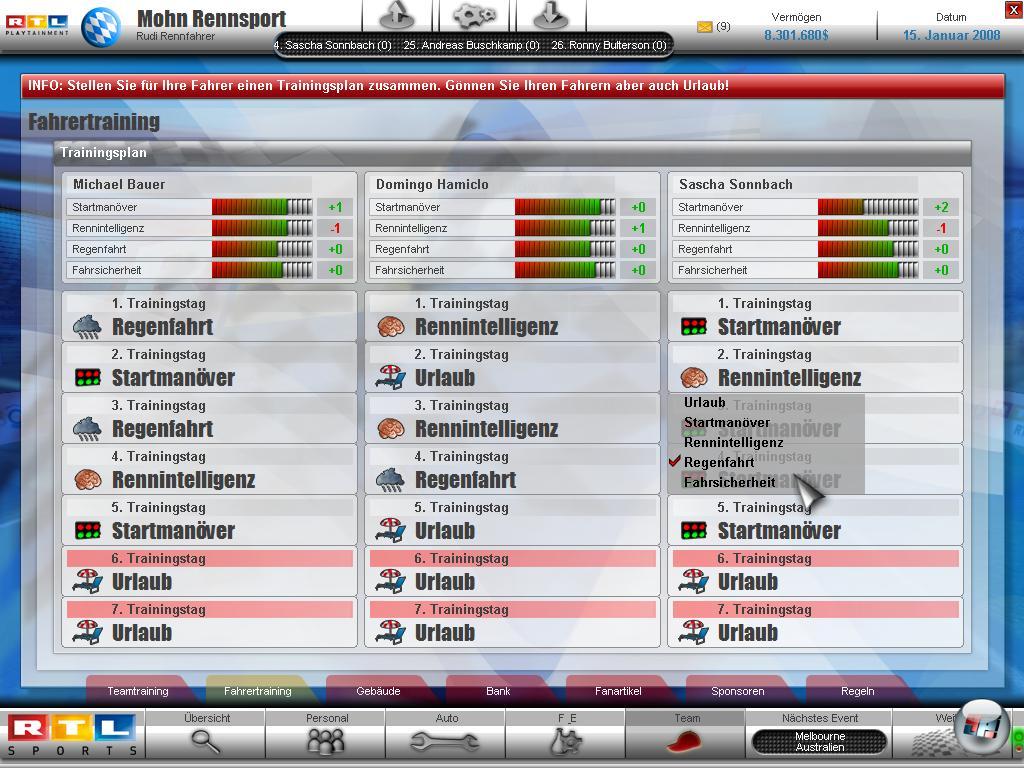 Wer sich für ein großes Team entscheidet, hat natürlich kaum finanzielle Probleme. Die zehn Millionen vom Start sind mehr als genug für den gemütlichen Beginn. Zumindest eine Saison ist damit gerettet. Wer da mehr Spannung haben möchte, muss selbst ein Team aus der Taufe heben, was auch möglich ist. Da heißt es dann schon etwas mehr haushalten, aber die Angebote für Werbung sind fast so hoch wie bei einem Spitzenteam. Aber wer klebt schon gern die ganze Karre mit RTL-Logos zu? Zum Glück gibt es auch noch andere wie Clipfish, Alienware oder gaghalber Comport Interactive, also die Firma, die diesen schlechten Manager fabriziert hat.