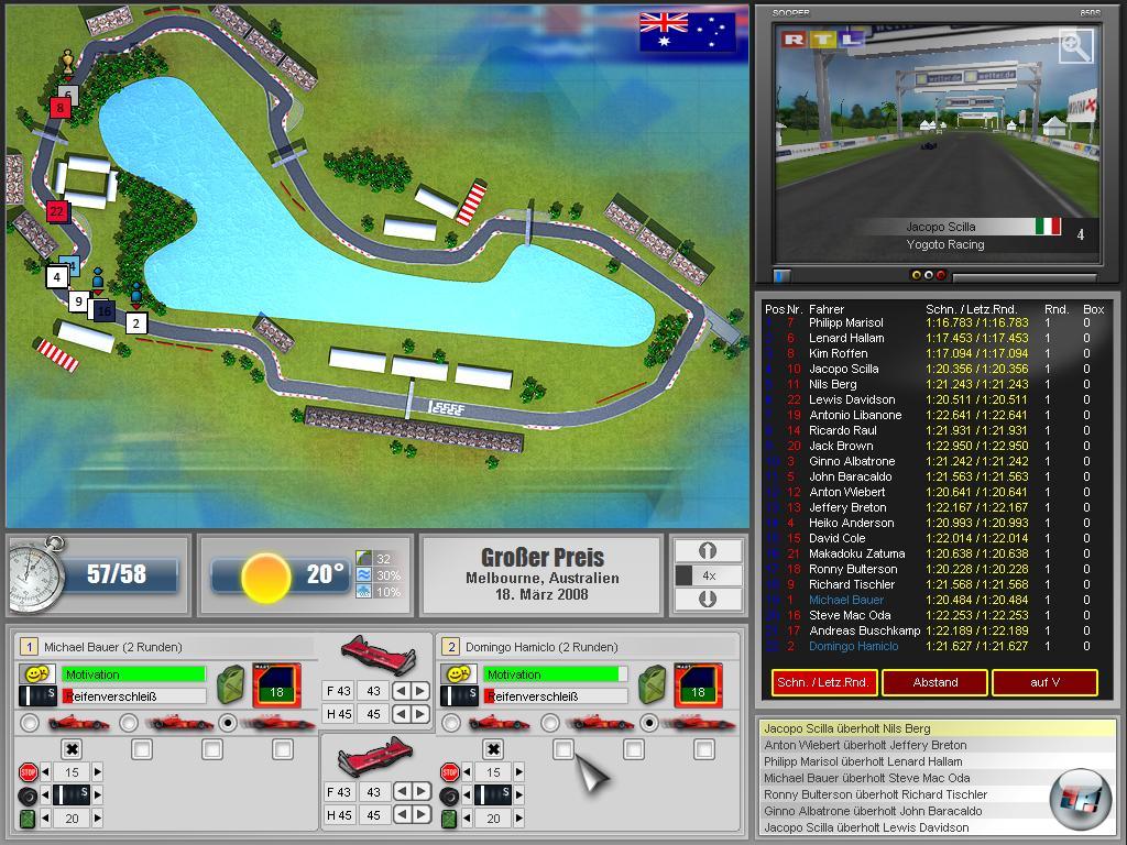 müsst euch mit einem Fantasienamen begnügen oder den beiliegenden Editor bemühen. Immerhin sind 18 Originalstecken des aktuellen Formel 1-Zirkus mit dabei: Von Kuala Lumpur über Bahrain und Monaco bis nach Silverstone. Moment, einen Originalnamen gibt es doch: Für den Motorsportexperten Christian Danner von RTL haben die Produktionskosten offensichtlich doch noch gereicht. Aber dieses Geld hätte man sich auch sparen können: Mit seiner Schlaftablettenstimme spricht er die wenig erhellende Einführung und auch die Rennkommentare, die lahmer nicht klingen könnten – quasi ein Kurzauftritt mit Atmosphäreverlust!