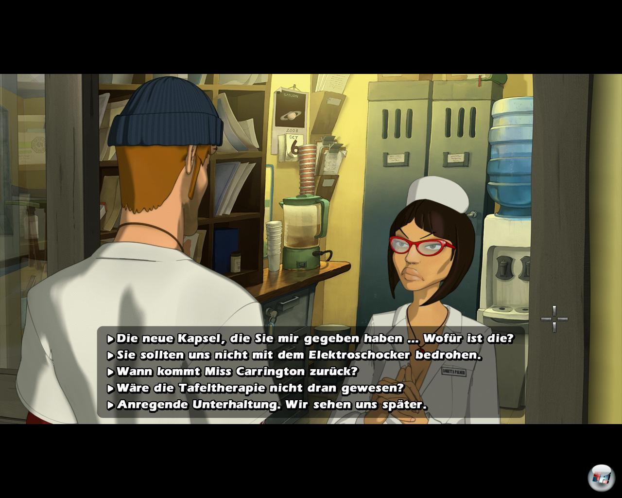 Immerhin lassen sich die manchmal ausufernden und banalen Gespräche umgehen: Wer nix über die Leute in der Klapsmühle wissen möchte, muss auch nicht danach fragen. Zur Lösung braucht man nämlich nur ein Mindestmaß an Texten zu lauschen. Die zum Teil schwachen Dialoge sind eigentlich schade, denn die Charaktere wirken durchweg skurril. Nicht nur in der „Klapse“ scheint jeder einen Schuss zu haben, wie sich an einer schlagkräftigen Hausmeisterin oder einem fanatischen Elvisfan zeigt. Leider spiegelt das die Sprachausgabe nicht immer unbedingt wider.
