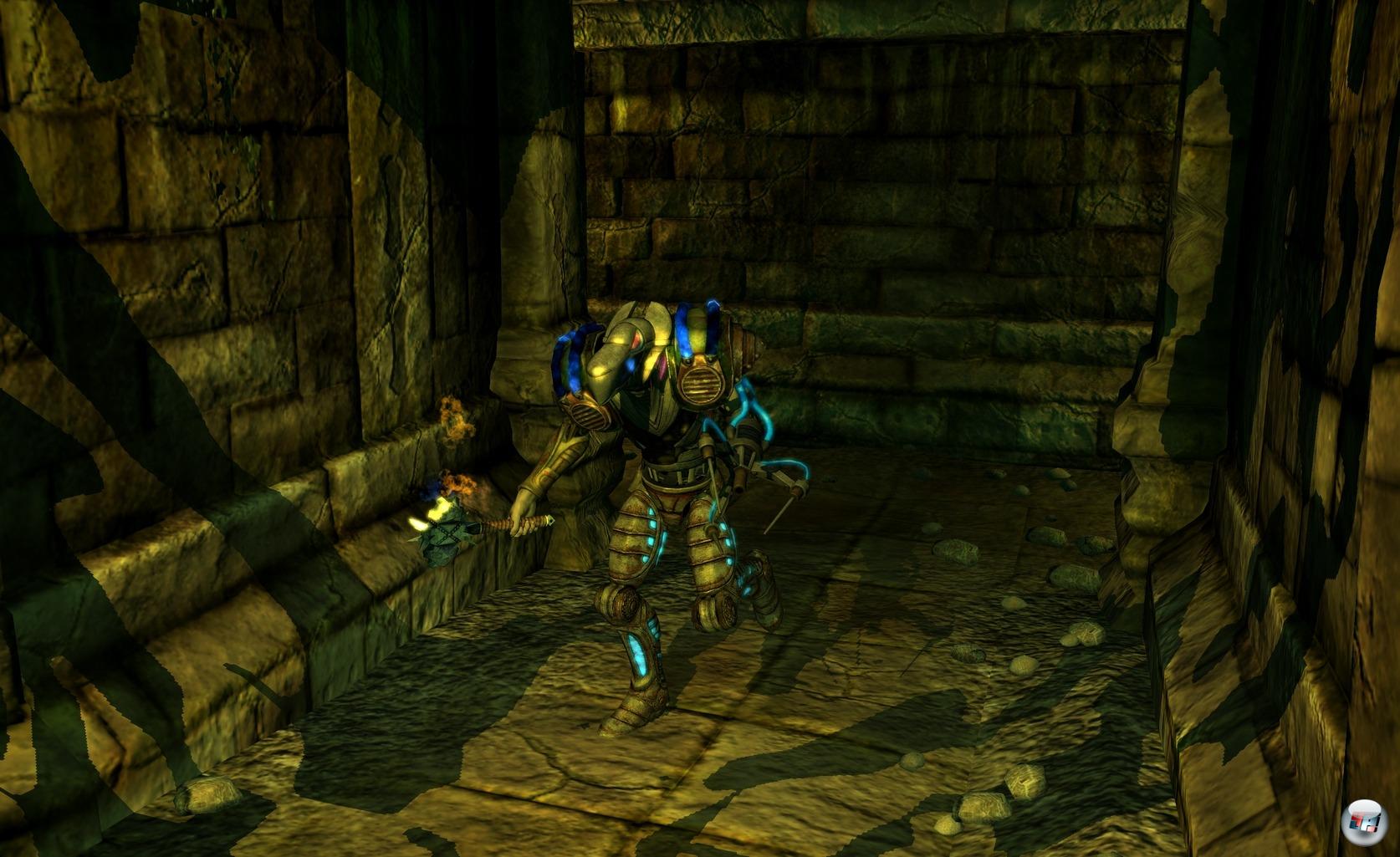 | Der ungewöhnlichste Charakter in Ancaria: Der futuristisch angehauchte Tempelwächter, der die erzählerische Brücke zwischen Fantasy und Science Fiction schlägt. |